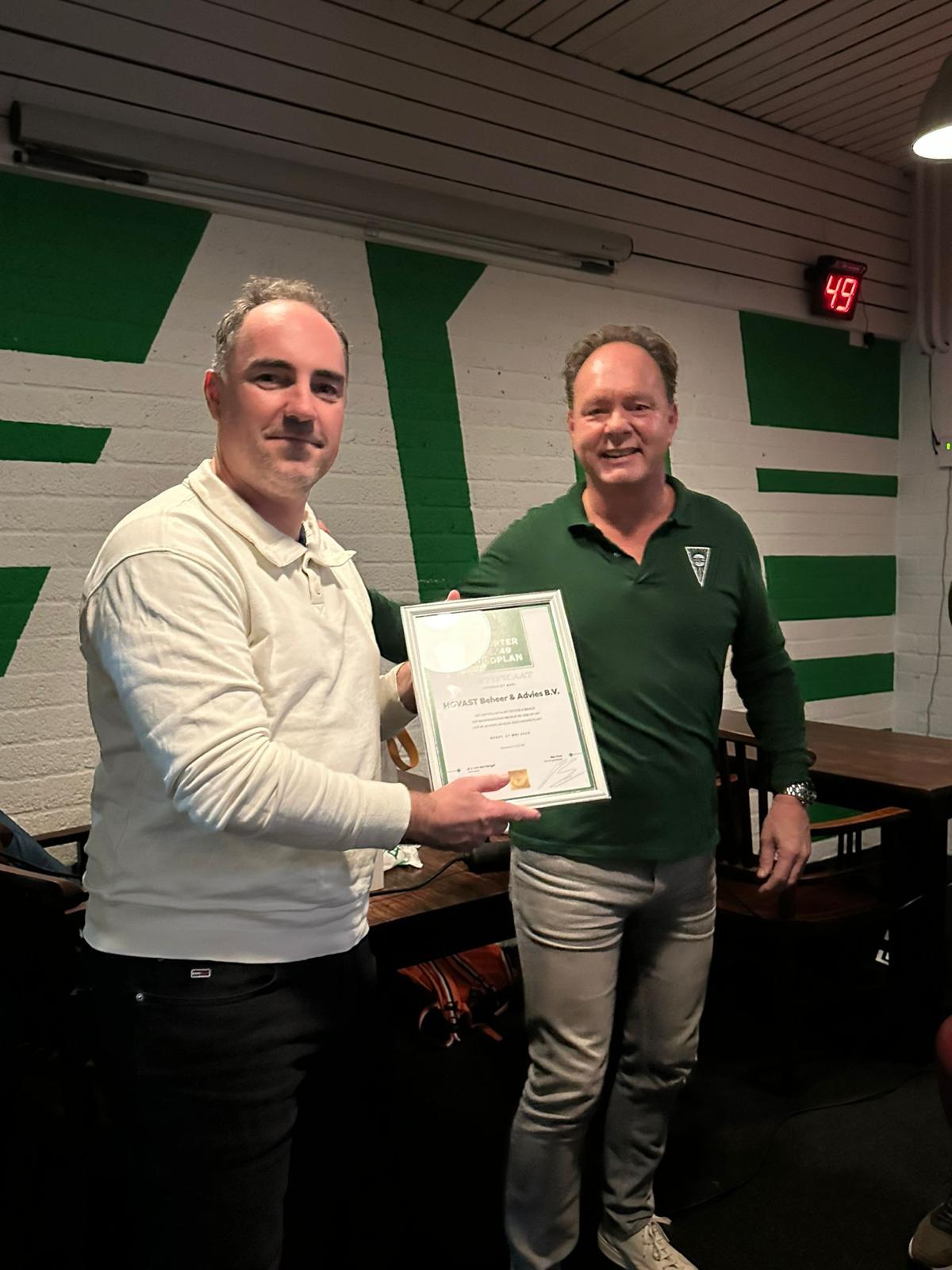 Ook werd die avond Koen Hooft in het zonnetje gezet. Hij verbond zich met zijn bedrijf Hovast voor vijf jaar aan het VVZ49 Jeugdplan. Hovast is hiermee alweer de 17e sponsor die de jeugdafdeling financieel ondersteunt zodat alle jeugdteams beschikken over goede kleding, materialen en trainers!