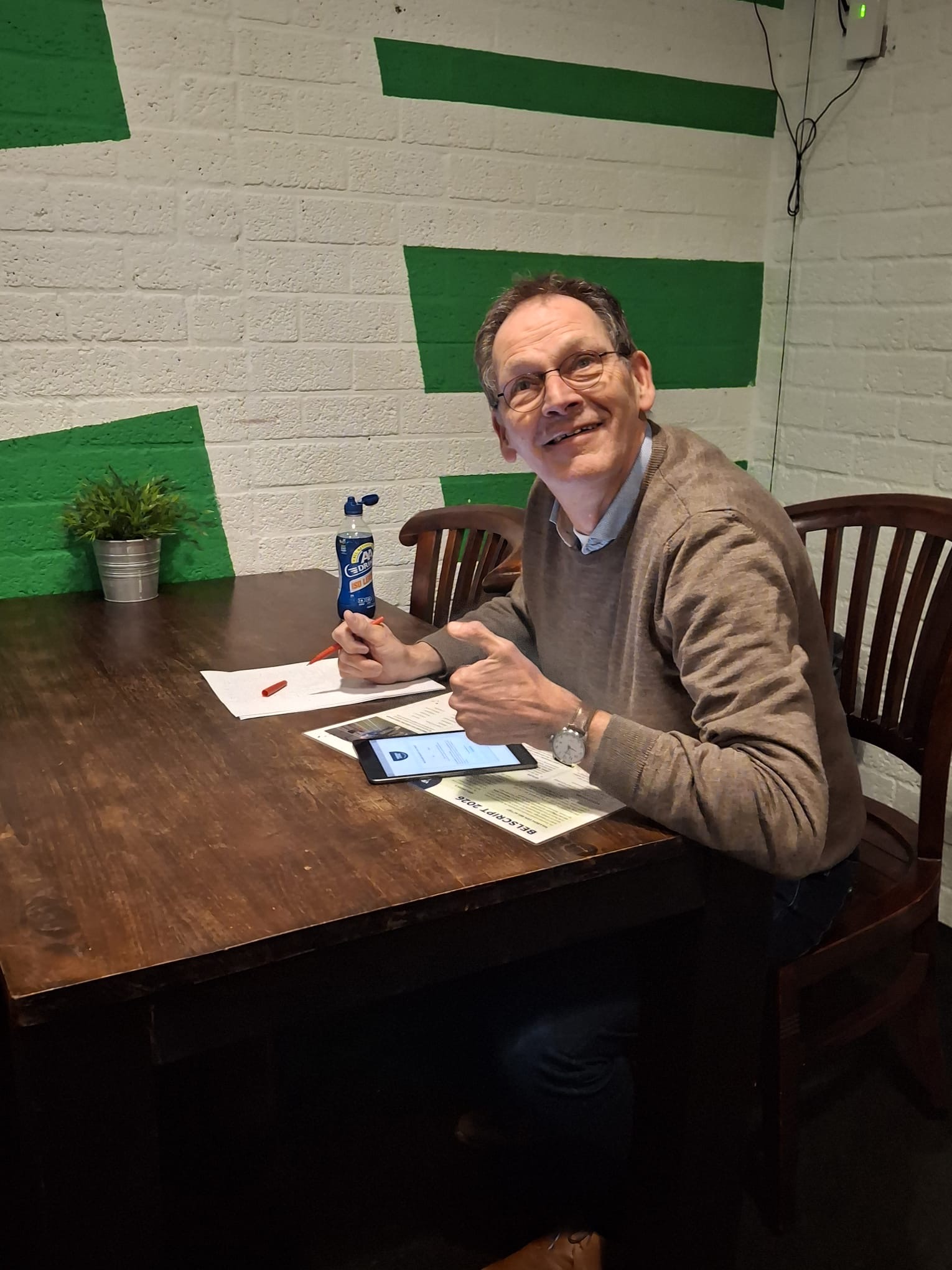 Om 21.30 uur moesten we stoppen, maar dat lukte bijna niet; iedereen schreef nog z’n laatste gegevens op en Gijs ging met z’n tablet nogmaals de kleedkamer in van de selectie! Om 22 uur kwam de eindscore er werd er een pilsje getapt, want alle stoutste verwachtingen werden overtroffen en stond de teller op 104 nieuwe inschrijvingen!!!